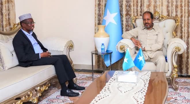 Muqdisho ( Raxanreeb Online) Kulanka dhex maray Madaxweynaha Jamhuuriyadda Soomaaliya, Xasan Sheekh Maxamuud, iyo Madaxweynihii hore ee dalka, Sheekh Shariif Sheekh Axmed, ayaa xalay ka dhacay hoyga uu madaxweynihii hore ka deggan yahay magaalada Muqdisho.