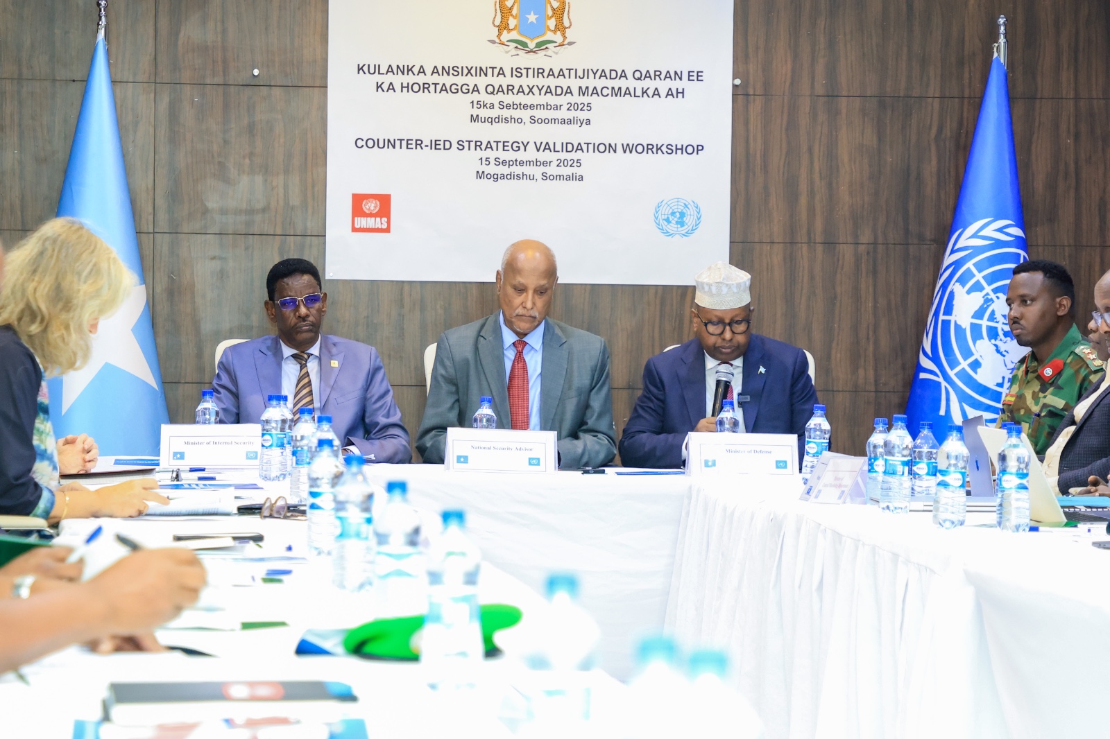 Muqdisho ( Raxanreeb Online) Wasiirada Gaashaandhigga iyo Amniga eexukuumadda Soomaaliya, ayaa maanta ka qaybgalay kulanka ansixinta Qorshaha Qaranka ee Ka-hortagga Qaraxyada Macmalka ah (C-IED), oo ay sidoo kale ka qayb-galeen Lataliyaha Amniga Qaranka iyo wakiilo ka socday beesha caalamka.